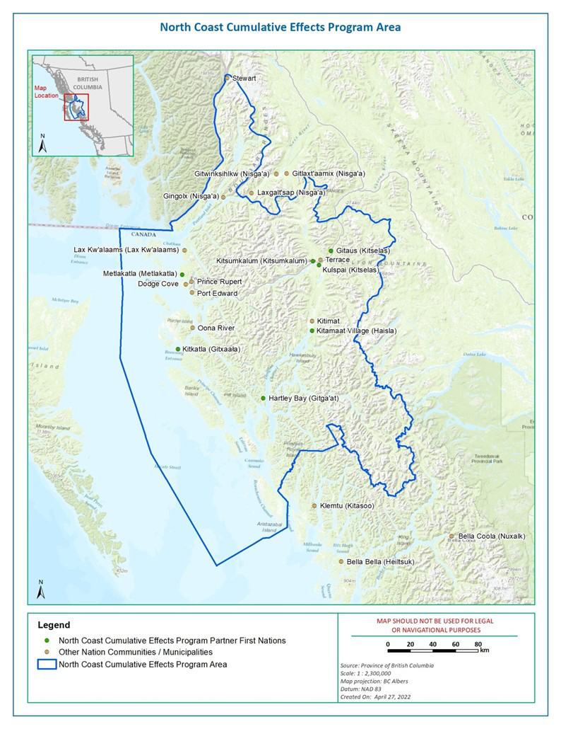 The NC CE program is comprised of representatives from Gitga’at, Gitxaała, Metlakatla, Haisla, Kitselas, and Kitsumkalum First Nations and the Province of British Columbia, with coordination and technical support from North Coast-Skeena First Nations Stewardship Society.